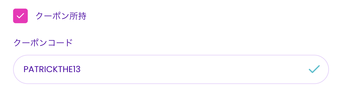 最後に「クーポン所持」にチェックを入れ、以下のクーポンコードをコピペして「使用する」ボタンを押すと価格が5%割引されます。