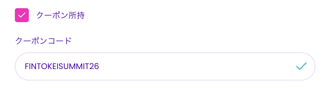 | 対面イベント記念 | 2025年10月4日〜 2025年10月5日 | FINTOKEISUMMIT25 | 25%OFF |