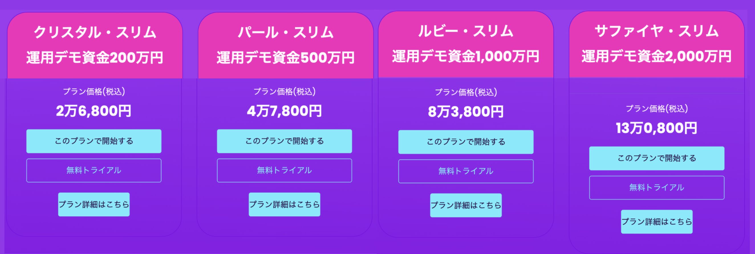特にクリスタルとパールは高額プランと比べて支払い金額に対してもらえる投資資金が少ないから、基本的にルビープラン以上受けるのをオススメするのだ!