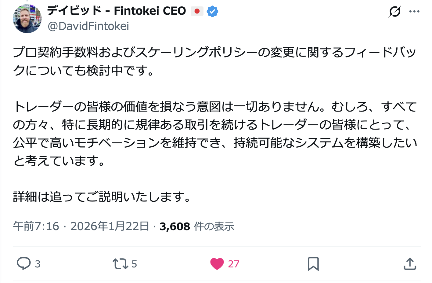 プロ契約金とスケーリング制度がなくなったことにより、Xでは改悪と感じているトレーダーが多いのだ