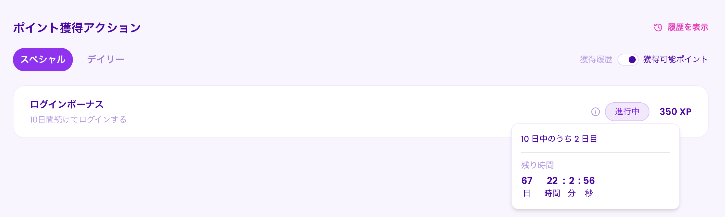 スペシャルミッションでは、特定の期間中に条件を達成するとXPを獲得できます。