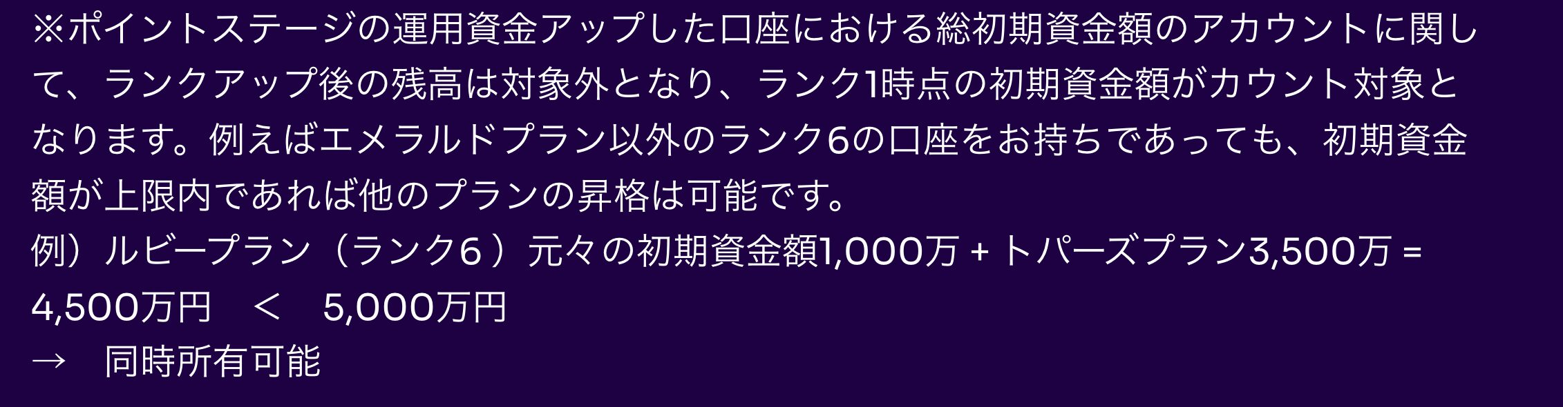 Fintokeiのチャレンジプランでは総額5,000万円までのプロトレーダー口座を保有することができますが、ランクアップ特典の投資資金増額はこのカウントに含みません。