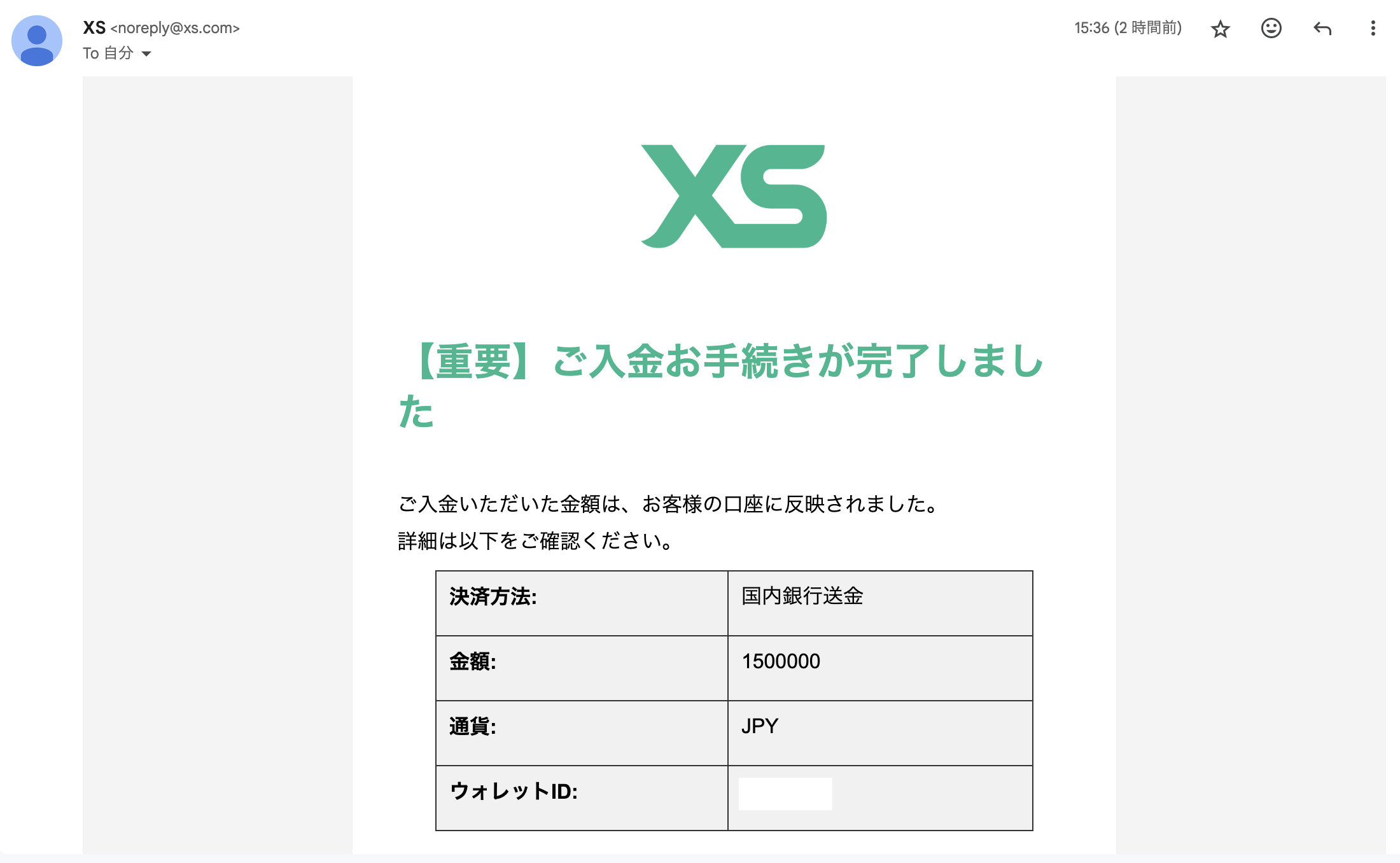 XS.comでは取引口座に直接入金する形ではなく、まずはウォレットに入金する仕組みです。