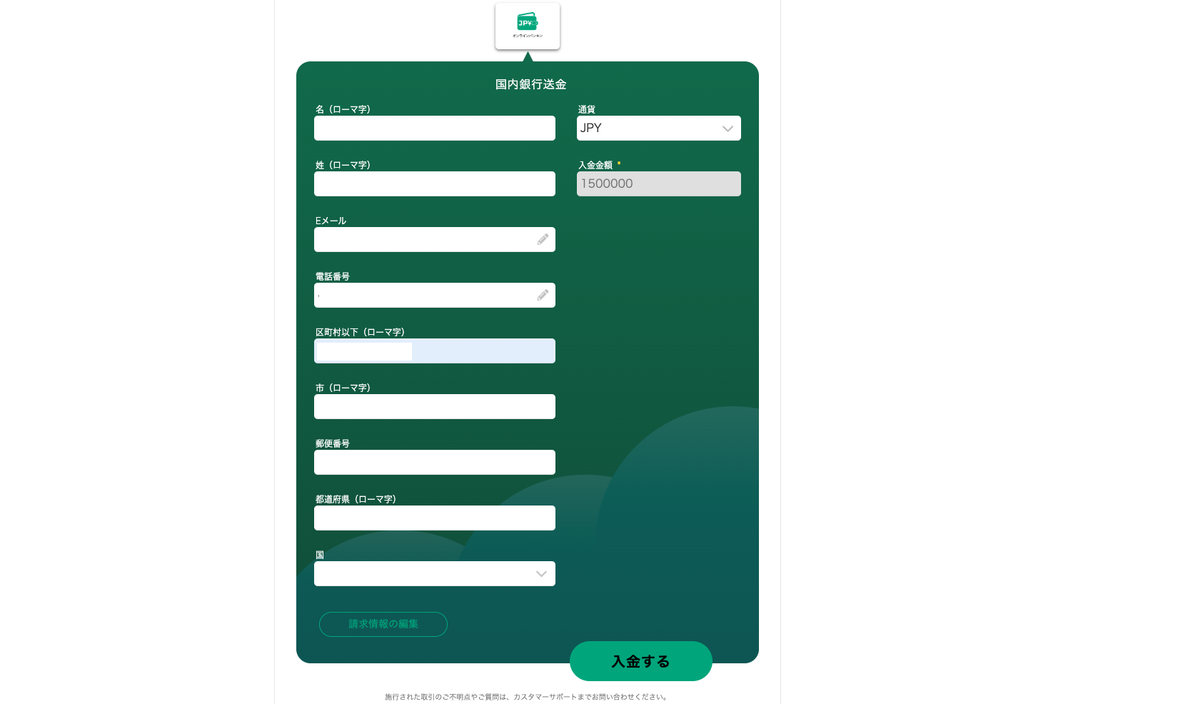 国内銀行送金を選択して「次へ」ボタンをクリックします。
