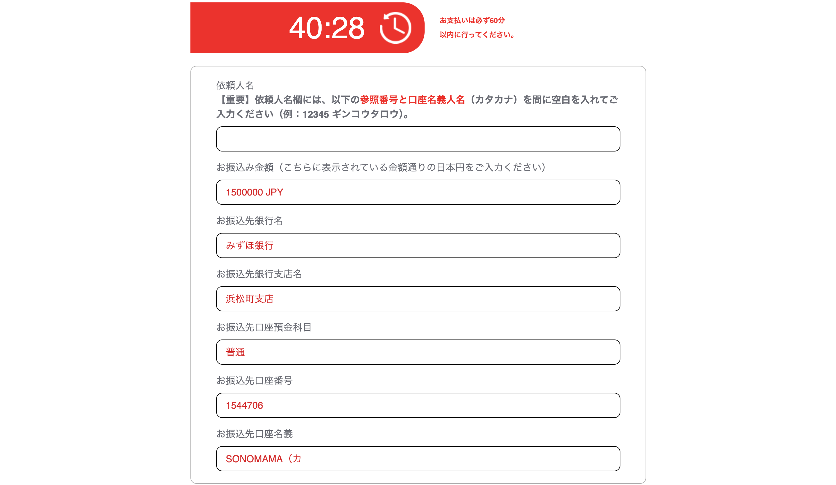 ご自身の銀行から振り込みする際、振り込み名義は「参照番号 名前(カタカナ)」に変更してから振り込みましょう。