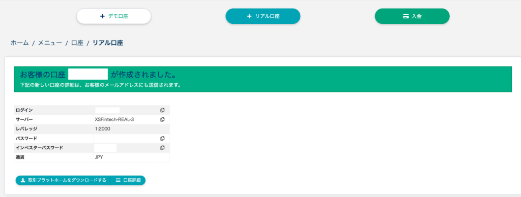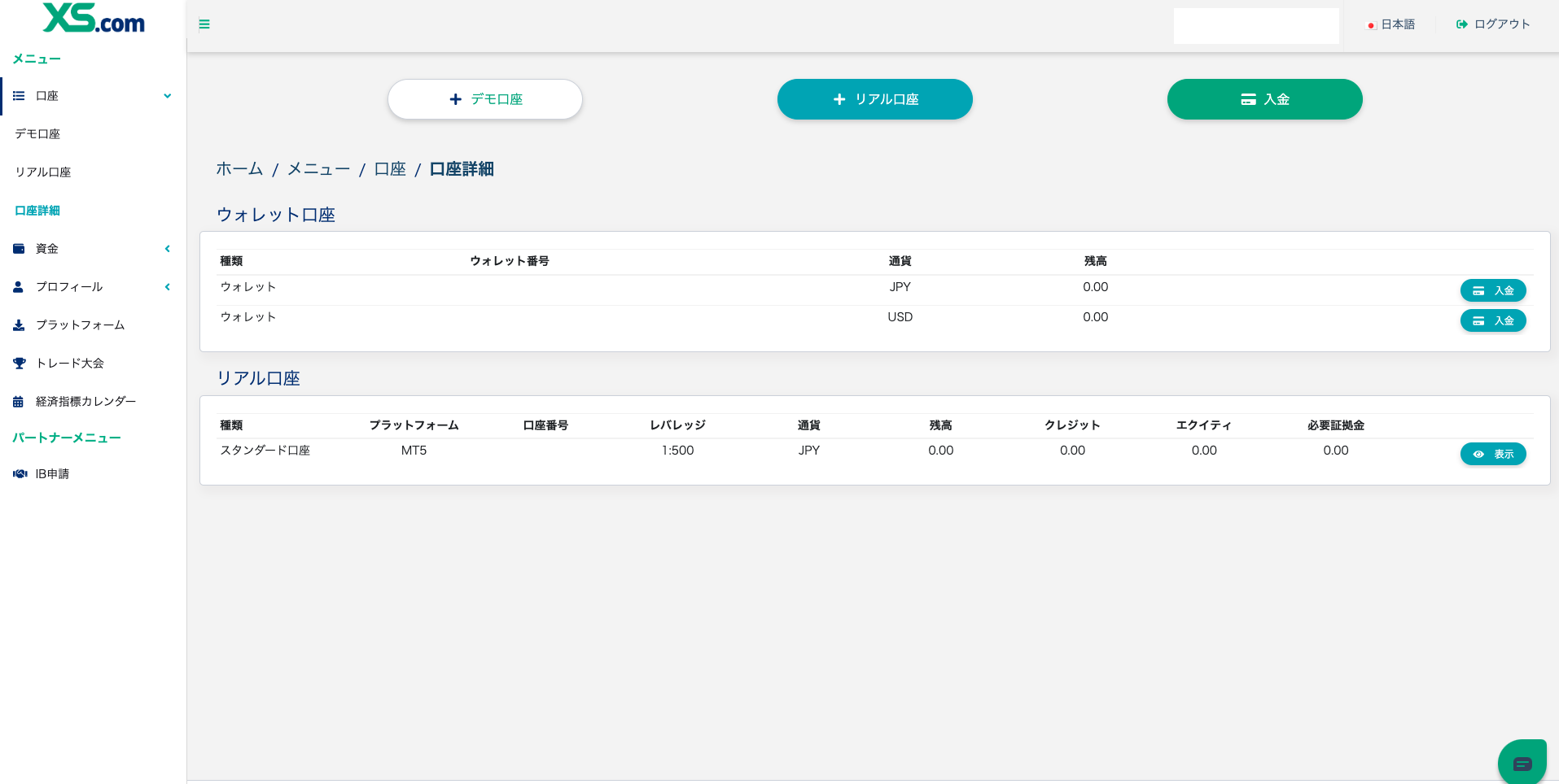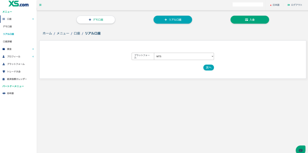XSではデフォルトで、MT5スタンダード口座が開設されています。