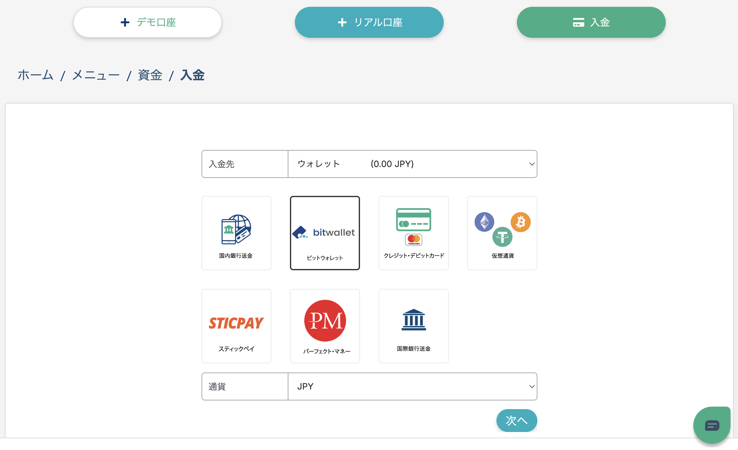 現在参加可能なデモトレード大会はBitwallet経由で5,000円以上入金する必要がありますので、今回はbitwalletで解説していきます。