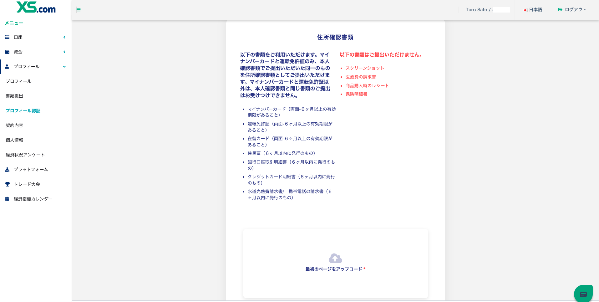 本人確認書類の提出が終わったら、住所確認書類の提出を行います。
