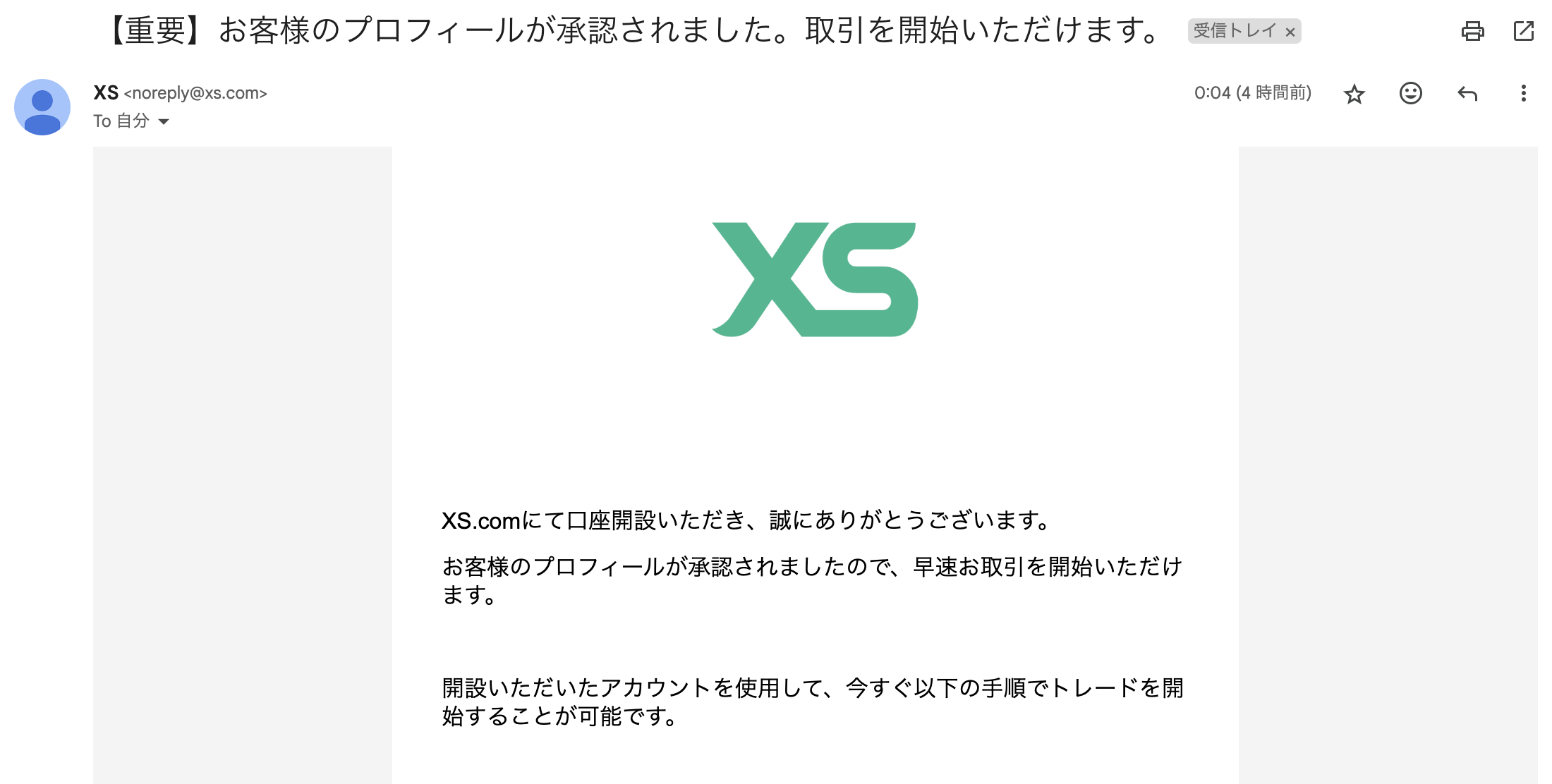 本人確認書類と住居証明書類の承認が完了すると、登録したメールアドレスに完了メールが届きます。