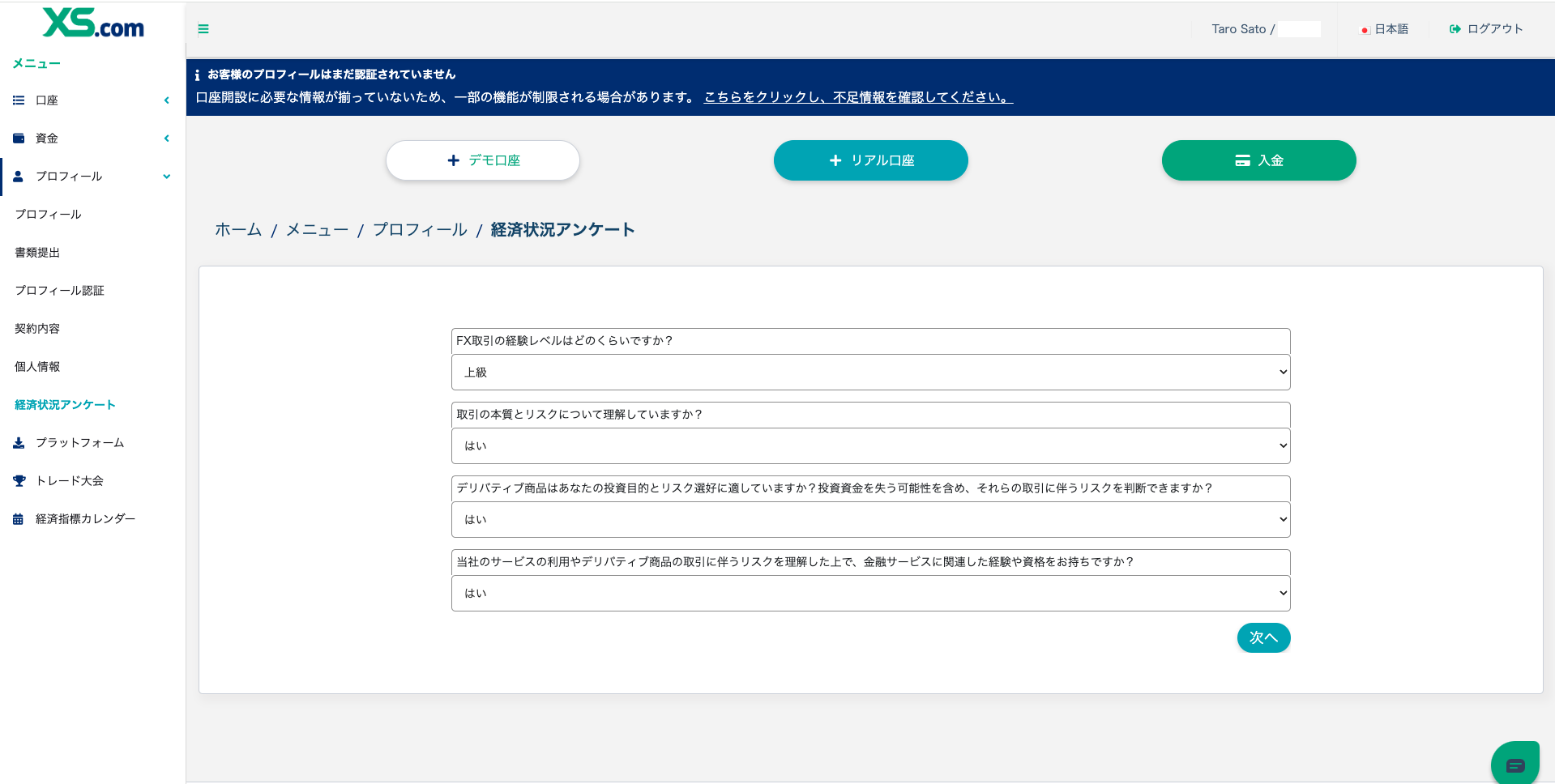 ・当社のサービスの利用やデリバティブ商品に伴うリスクを理解した上で、金融サービスに関連した経験や資格をお持ちですか?