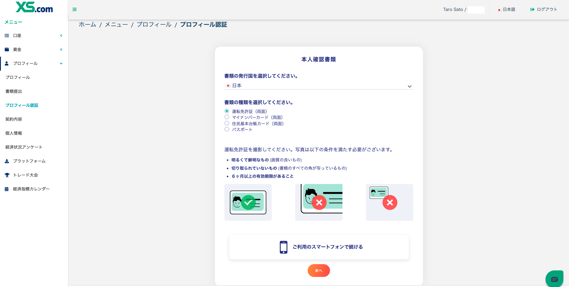 経済状況アンケートの回答が完了したら、次に本人確認を行なっていきます。