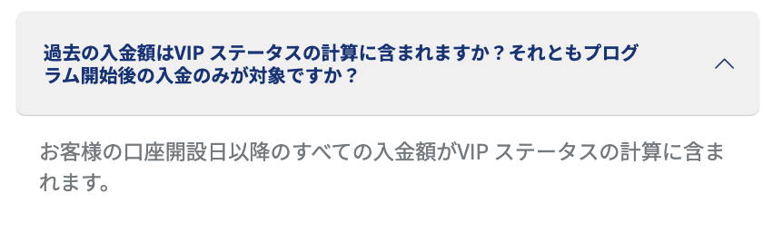 生涯総入金額は、XSアカウント開設日以降のすべての入金額がVIP ステータスの計算に含まれます。